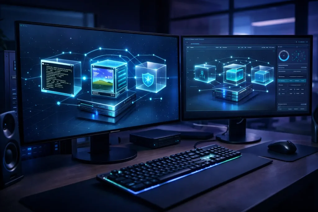 - بناء المختبرات المنزلية (Home Labs): بدلاً من شراء 3 أجهزة لتعلم الشبكات، يمكنك إنشاؤها وهمياً داخل جهازك. هذا هو الاستخدام الأمثل للتعلم والتطبيق العملي.